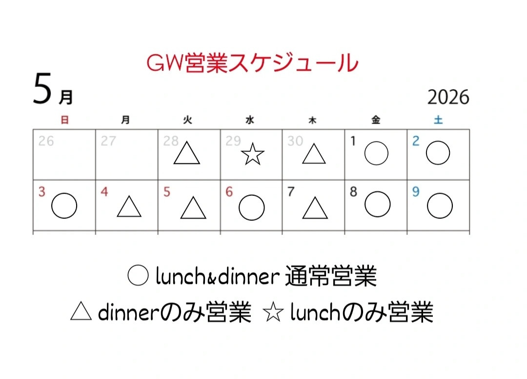 5月前半、GWの営業スケジュールです
